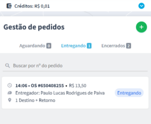 Na aba gestão de pedidos selecione o status entregando