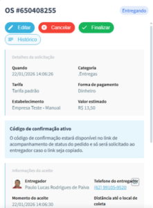localização do entregador e/ou confirme com o cliente o recebimento do pedido antes